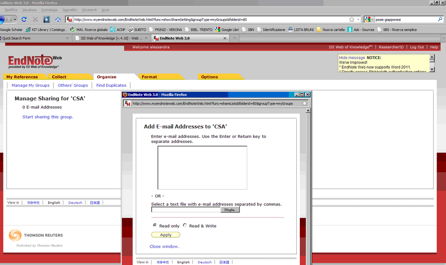 EndNote Web consente di condividere le proprie cartelle con altri utenti del programma.