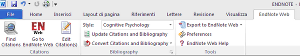plug-in Cite While you Write di EndNote Web consente di inserire e di formattare citazioni e riferimenti bibliografici in automatico durante la composizione di un testo in MS Word.